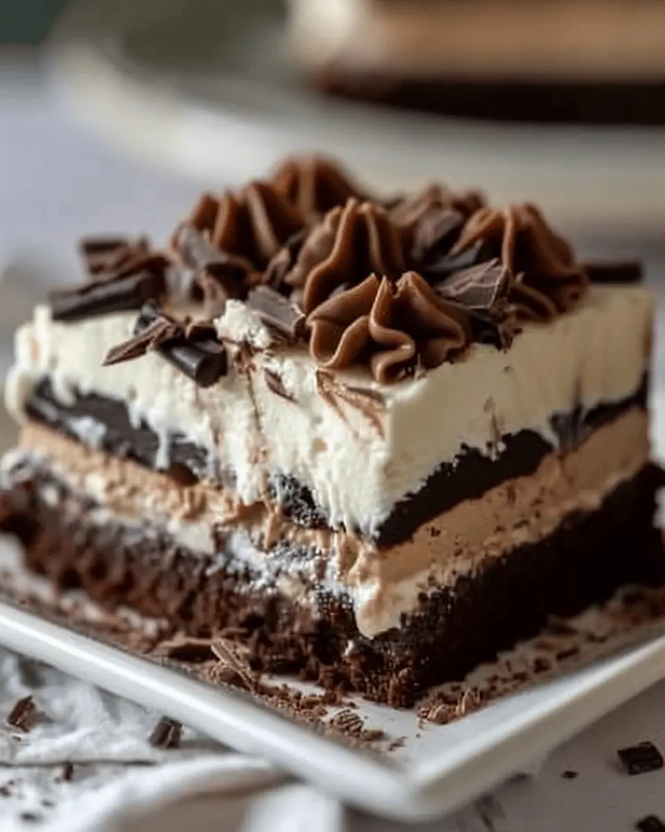 A delicious and indulgent brownie refrigerator cake that requires no baking, perfect for chocolate lovers.