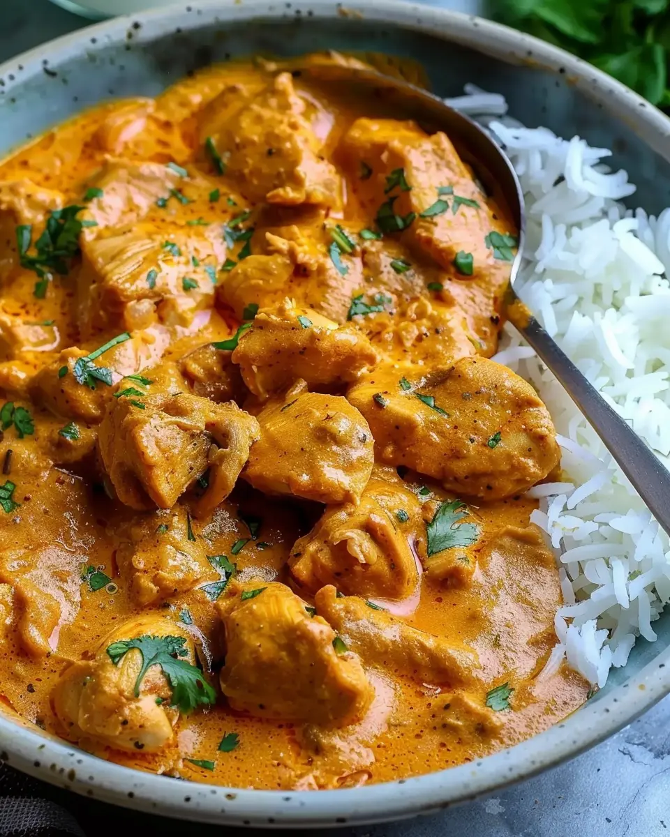 Garnish with extra cilantro for freshness, and voilà, your homemade butter chicken is ready to serve!