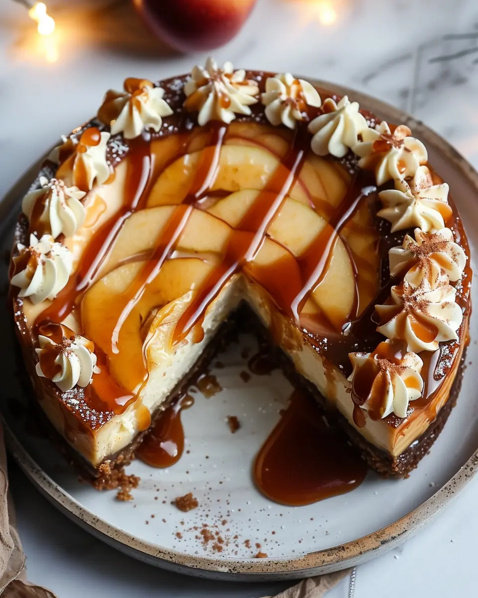 A deliciously rich caramel apple cheesecake perfect for enjoying at home.