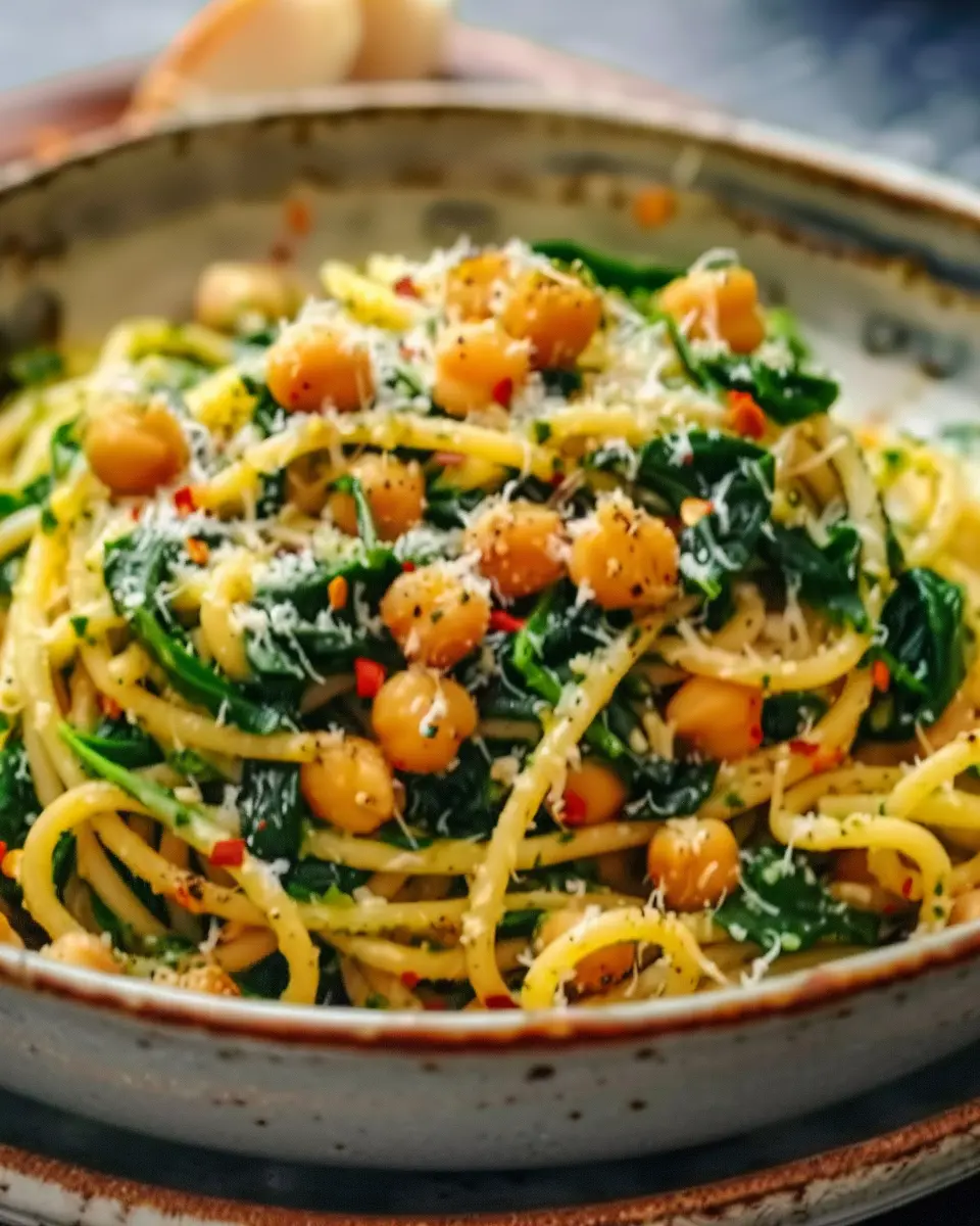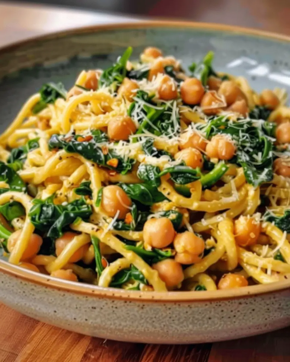 Chickpea and Spinach Pasta with a Twist of Lemon