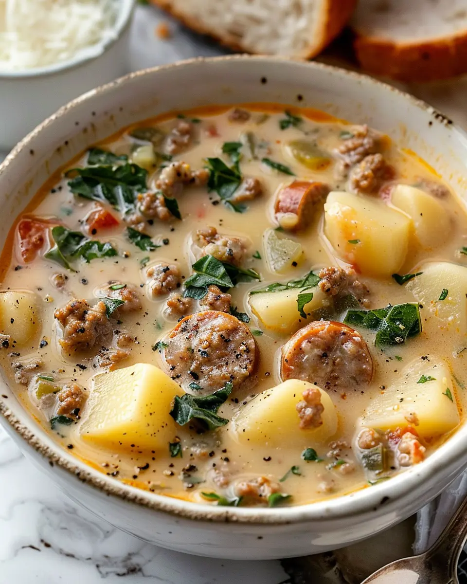 A comforting bowl of creamy Italian sausage and potato soup that’s perfect for chilly days.