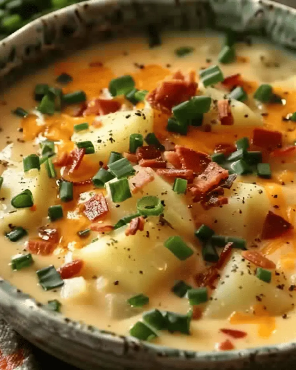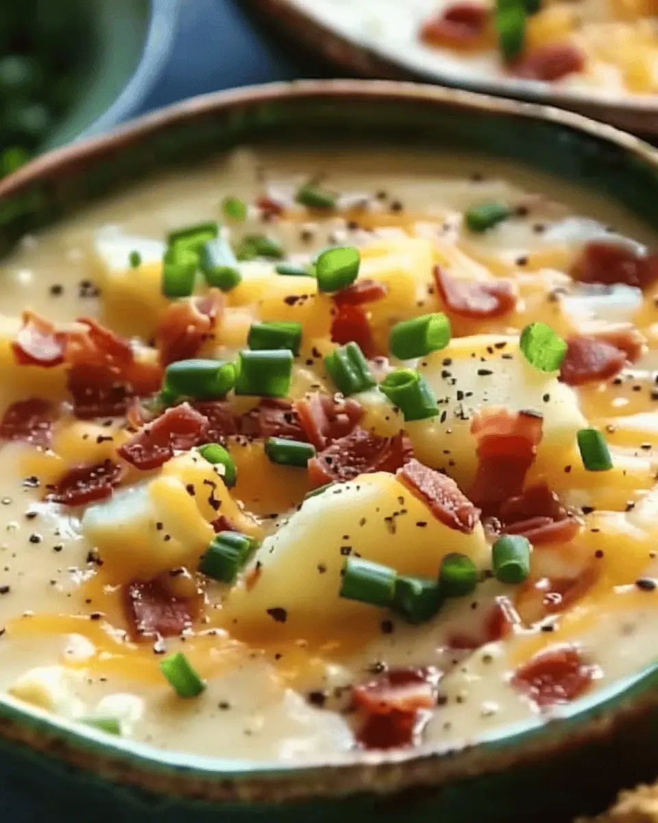 Firstly, it’s all about the ingredients. This soup combines the heartiness of potatoes with the delightful crunch and flavor of Turkey Bacon and Chicken Ham, making every spoonful an adventure. The creamy base, enriched with cheese and herbs, adds to its luxurious texture, making it hard to resist. But wait, there’s more! It’s also packed with nutrients—after all, potatoes are a great source of potassium and vitamin C! So while this dish is undeniably indulgent, it’s also a guilt-free choice for those seeking a nutritious option.