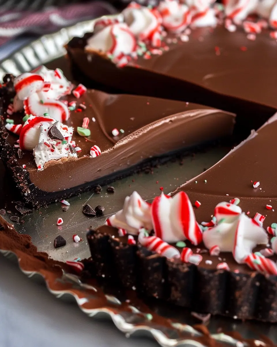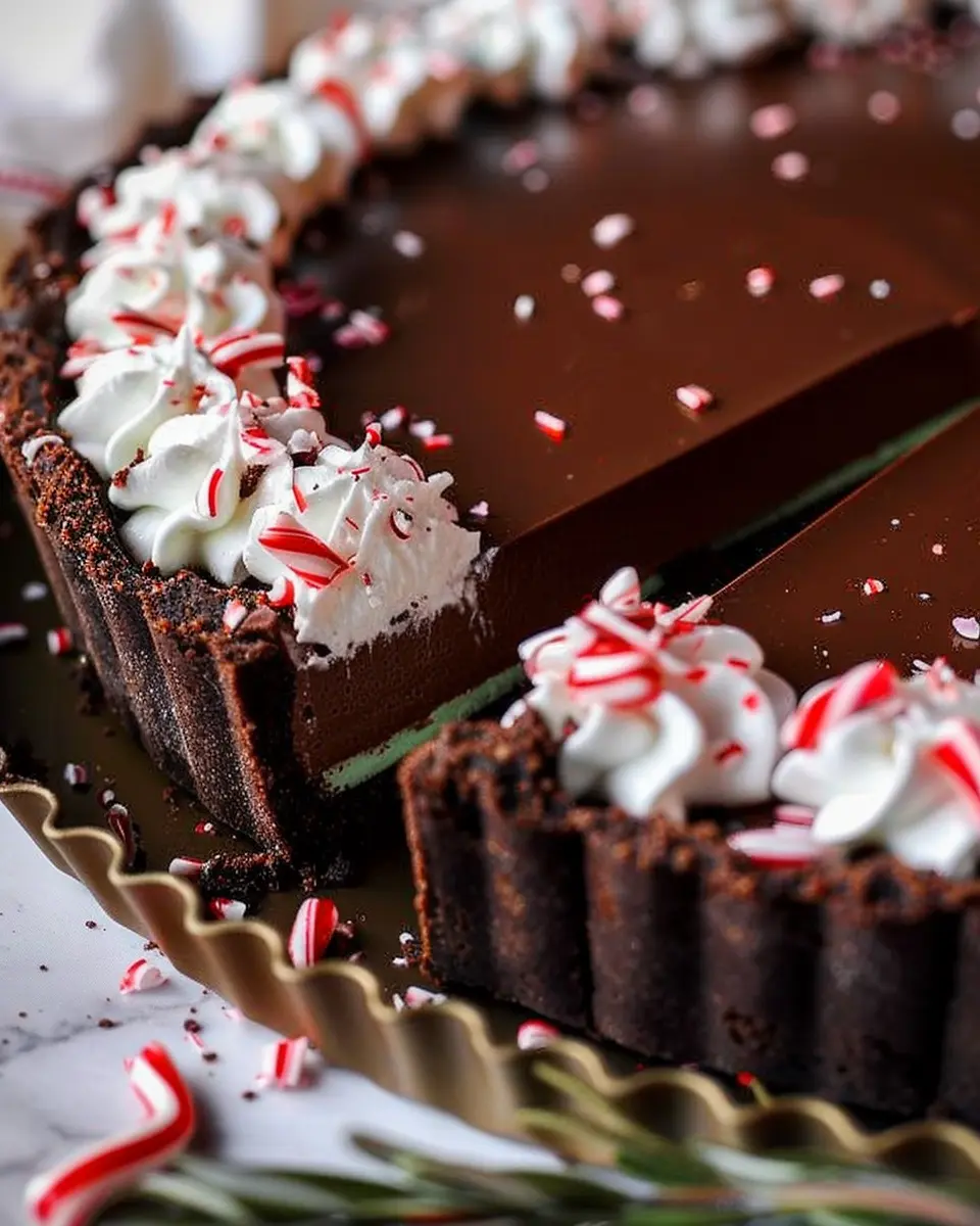 Indulge in the rich and creamy flavors of this Dark Chocolate Peppermint Mousse Tart, perfect for the holiday season.
