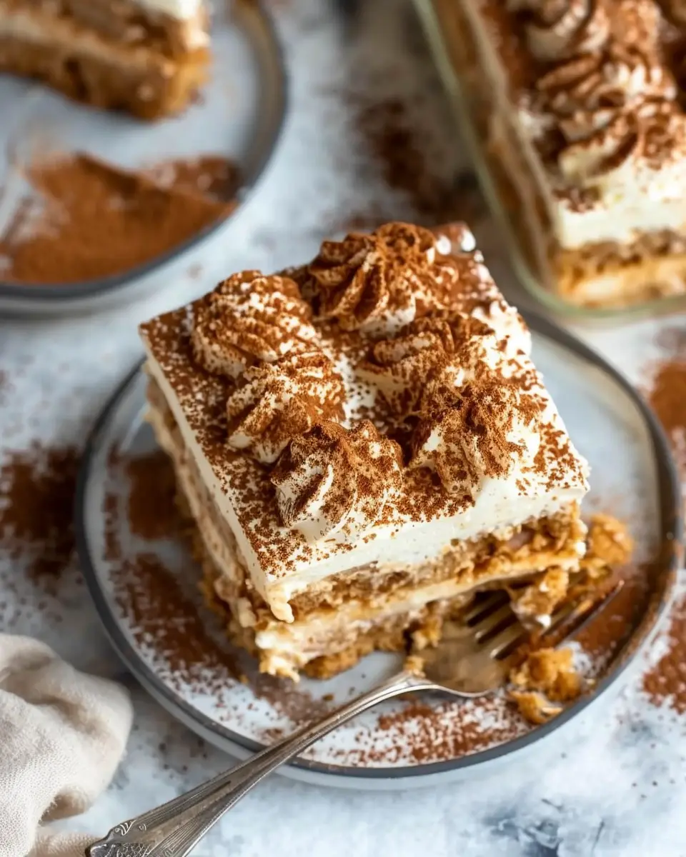 - Dust the top with cocoa powder for that classic tiramisu look.