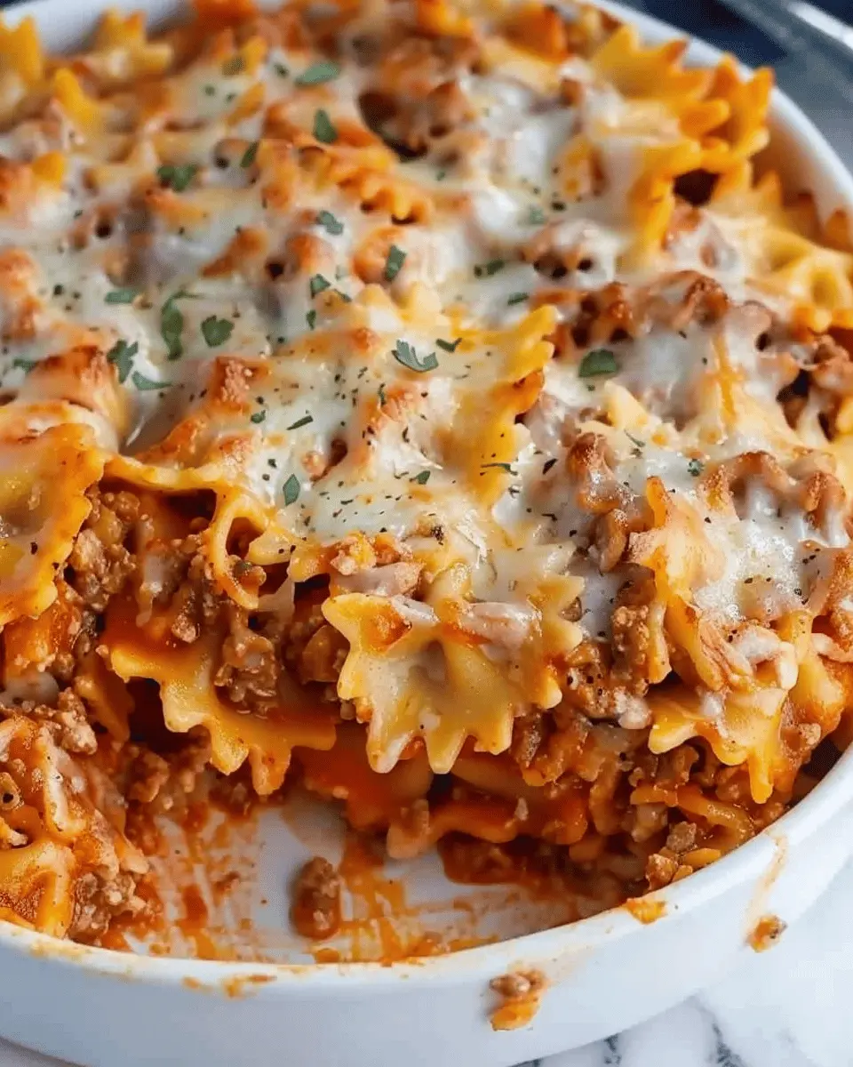 If you’re a fan of savory meat, the meat lover’s edition of easy bow tie pasta lasagna will hit the spot. This dish is your ticket to an indulgent, hearty meal.