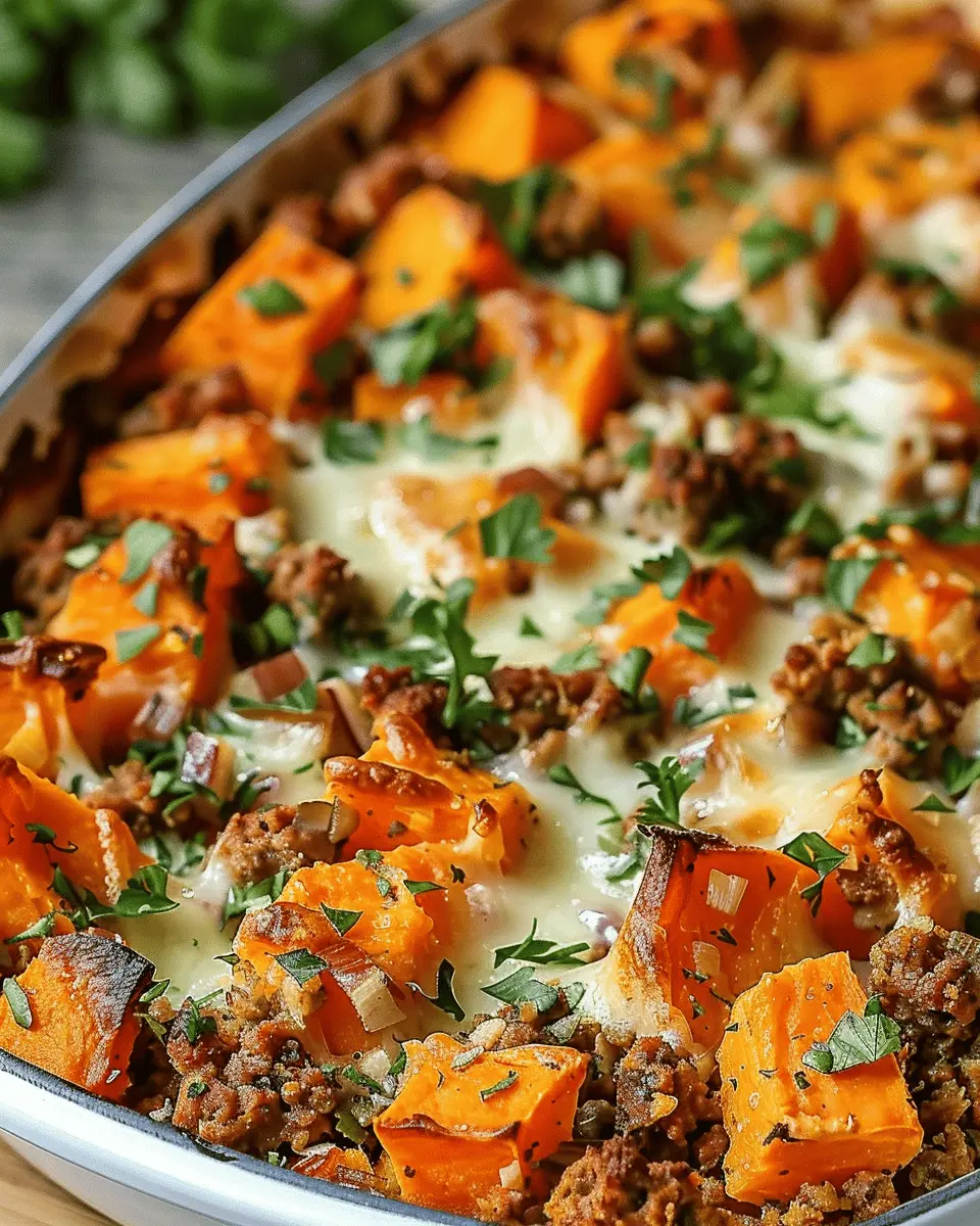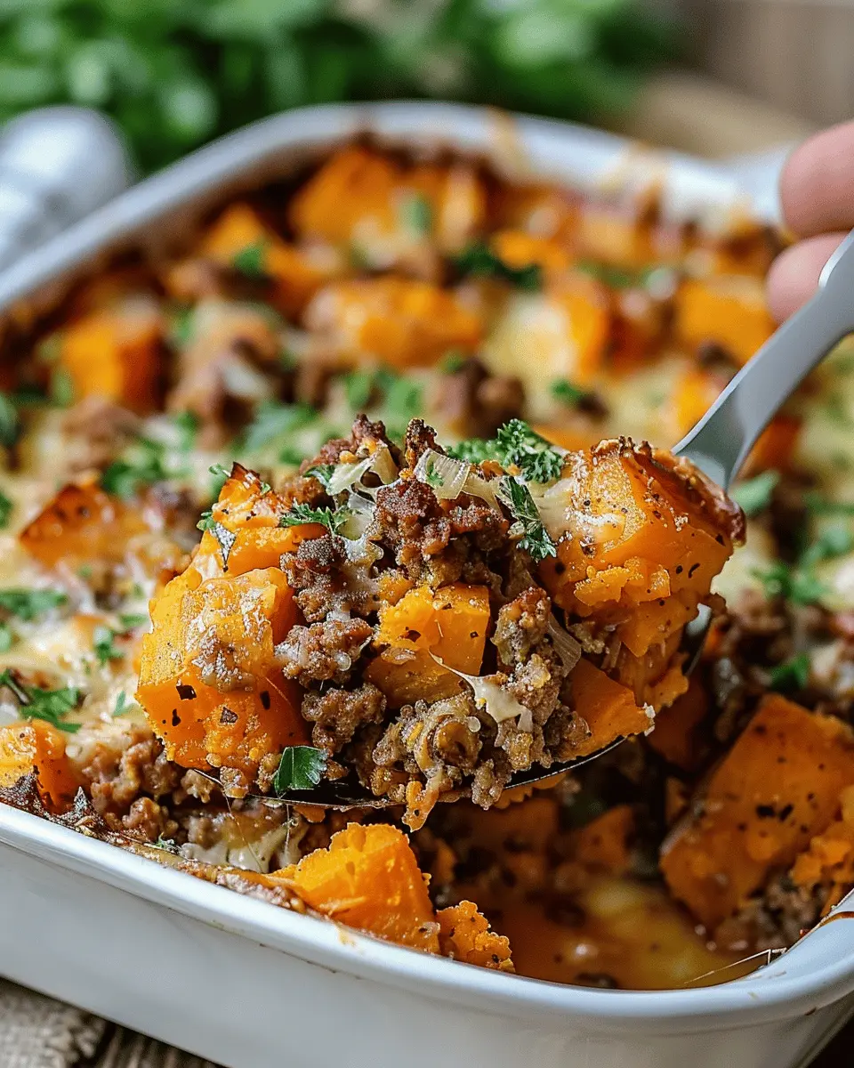 A delicious and easy recipe for Ground Turkey Sweet Potato Bake that combines savory ground turkey with sweet potatoes for a comforting dish.