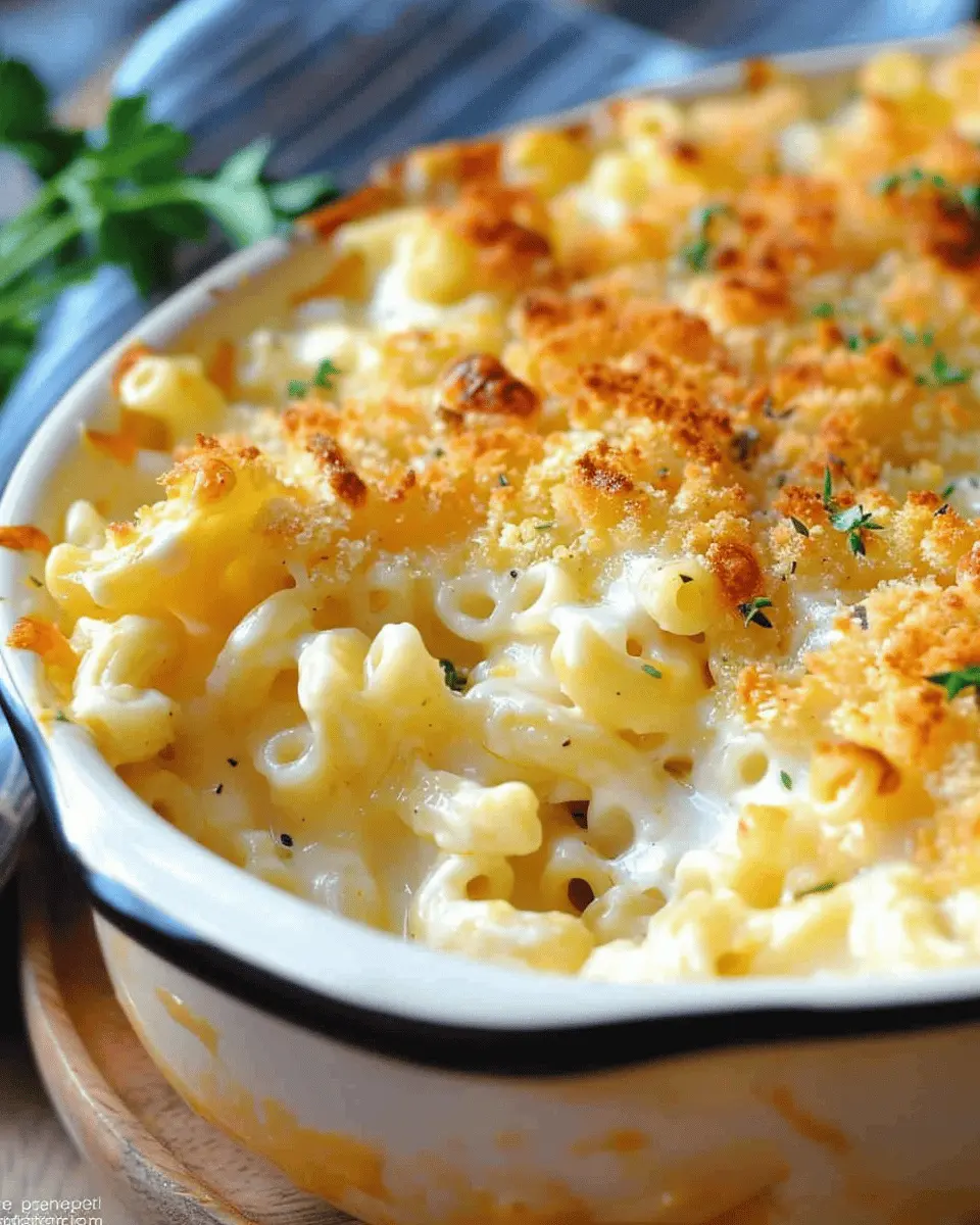 PrintIrresistibly Creamy Baked Mac and Cheese with Turkey Bacon Delight
