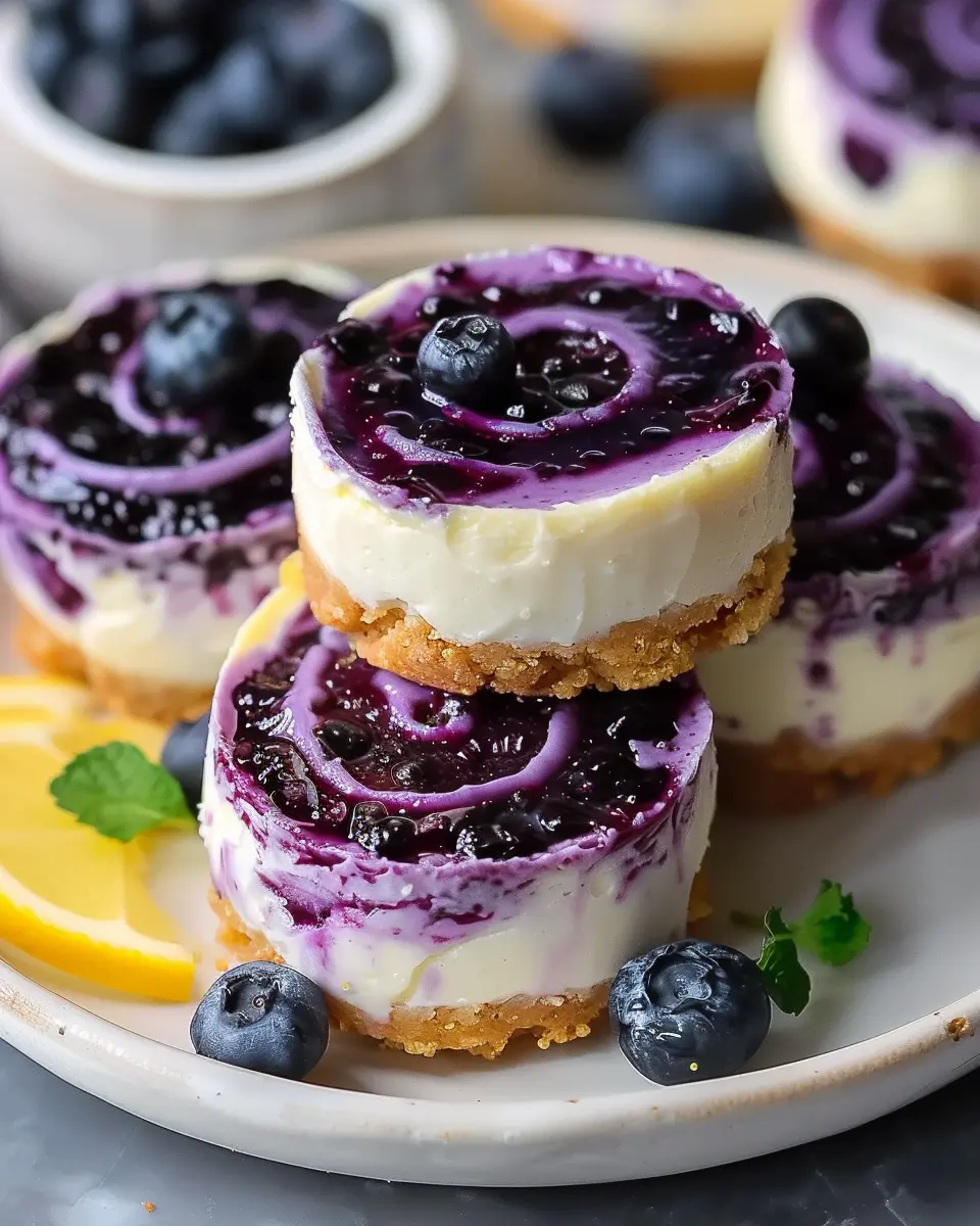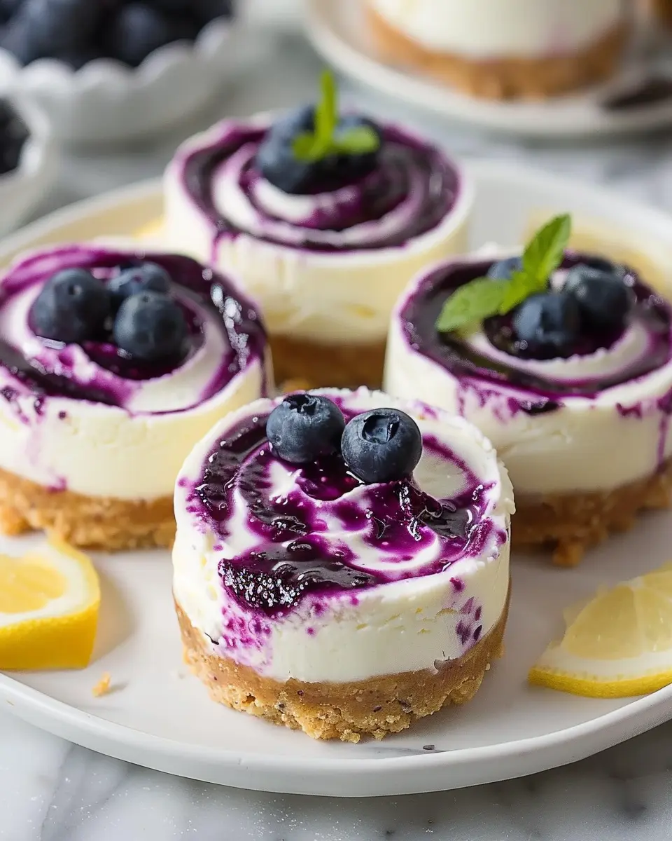 These juicy mini lemon blueberry cheesecakes shine when served fresh. You can plate them with an extra dollop of whipped cream or a sprinkle of fresh blueberries for a pop of color and flavor. Pair them with a refreshing beverage, such as iced tea or sparkling water with a hint of lemon for a lovely afternoon treat. Want to impress guests? Consider serving them alongside a fruit coulis or a drizzle of honey for that extra touch of sophistication.