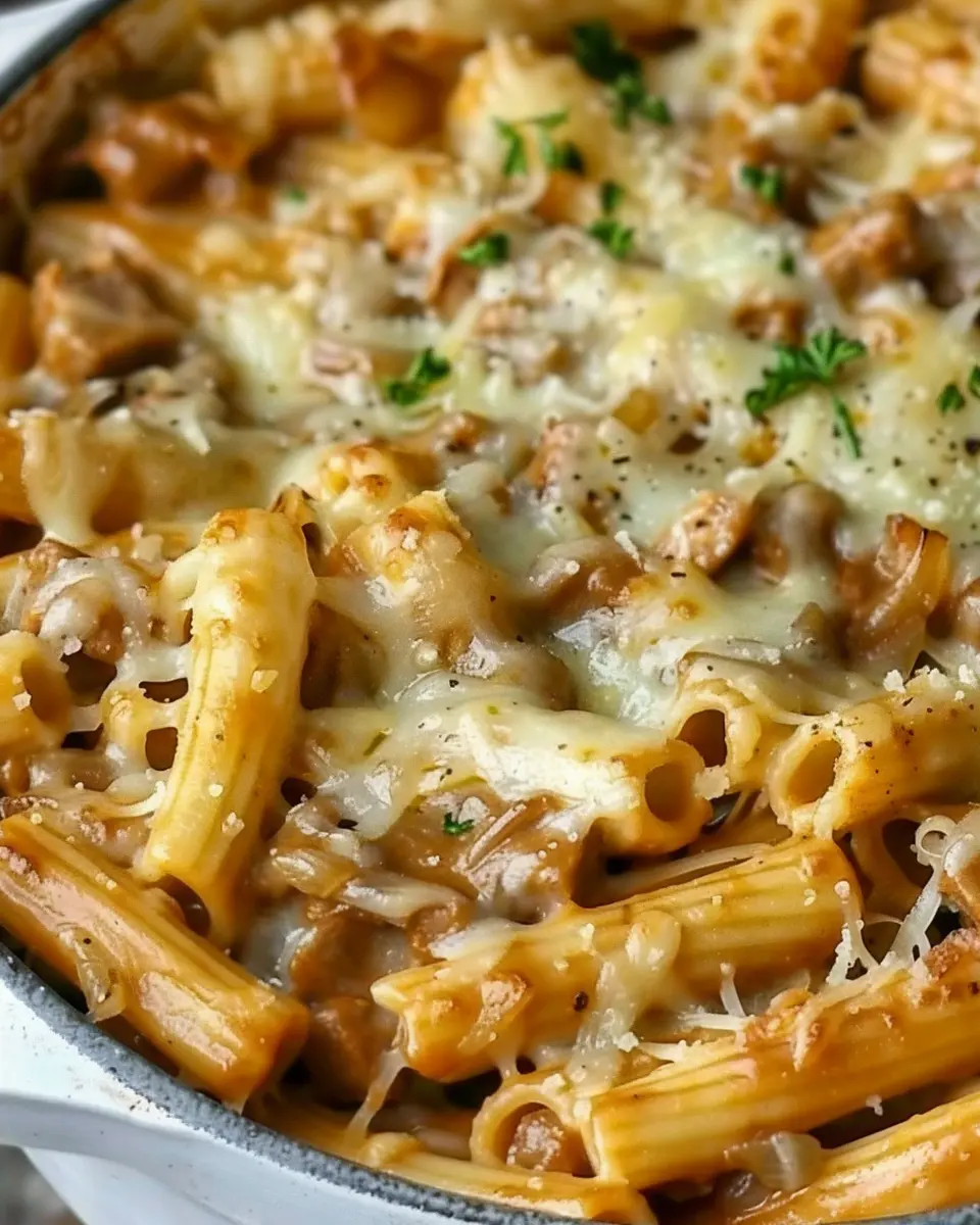 This One Pot French Onion Pasta is an easy and comforting weeknight dinner, combining the rich flavors of French onion soup with pasta.
