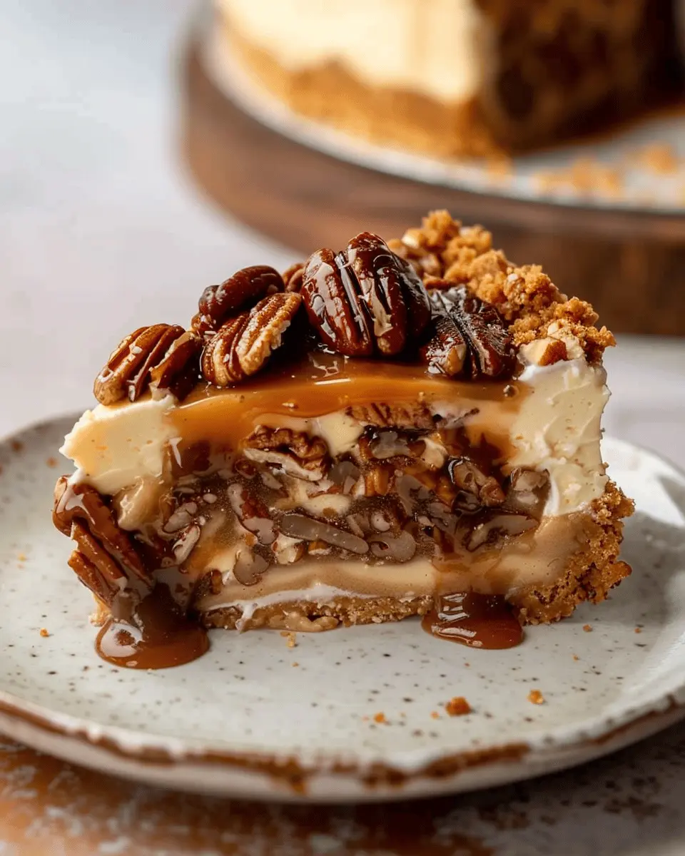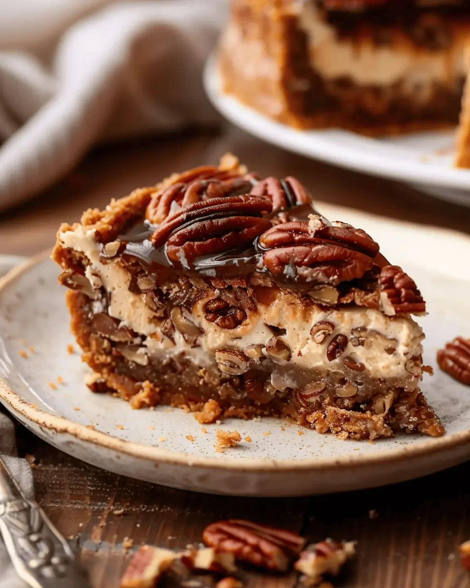 A delightful combination of classic pecan pie and creamy cheesecake that will satisfy any sweet tooth.