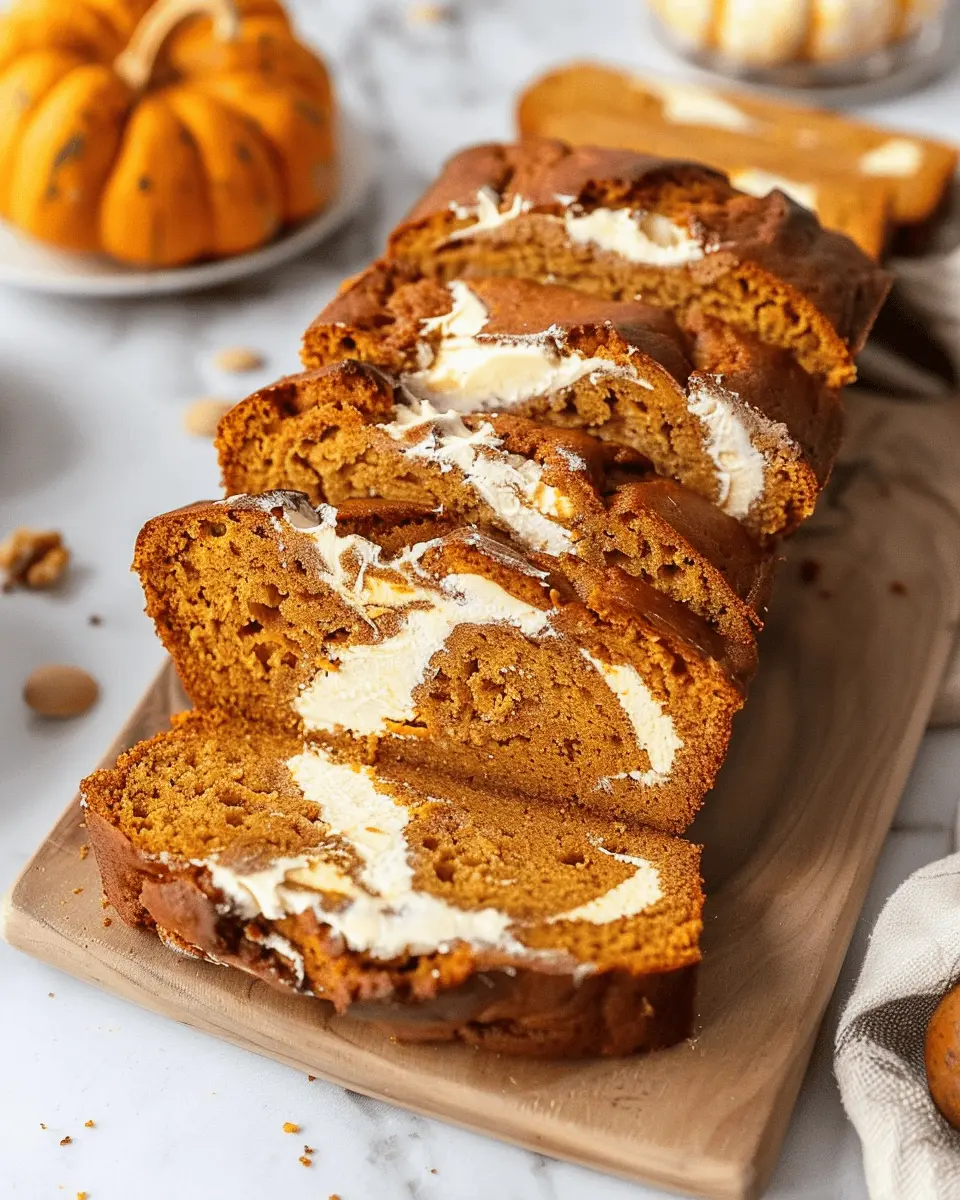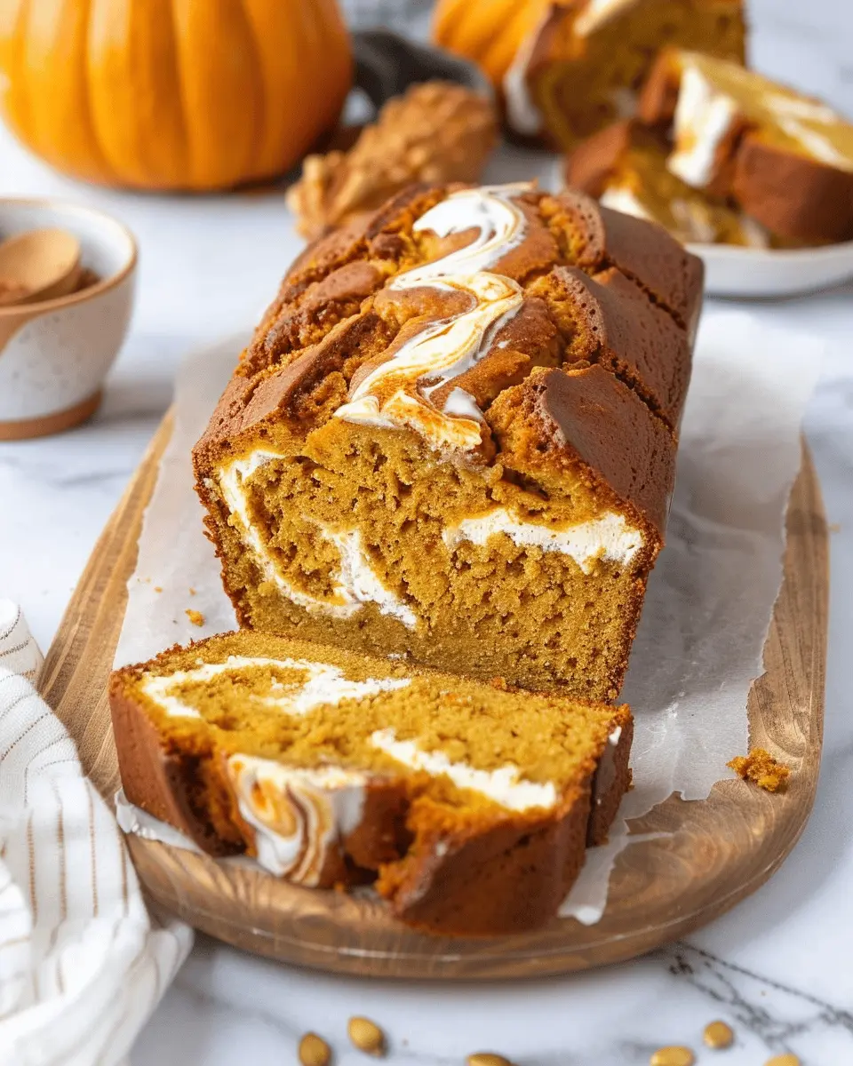 Indulge in the rich flavors of pumpkin bread paired with a luscious cream cheese swirl. This delightful recipe is perfect for fall and any occasion!