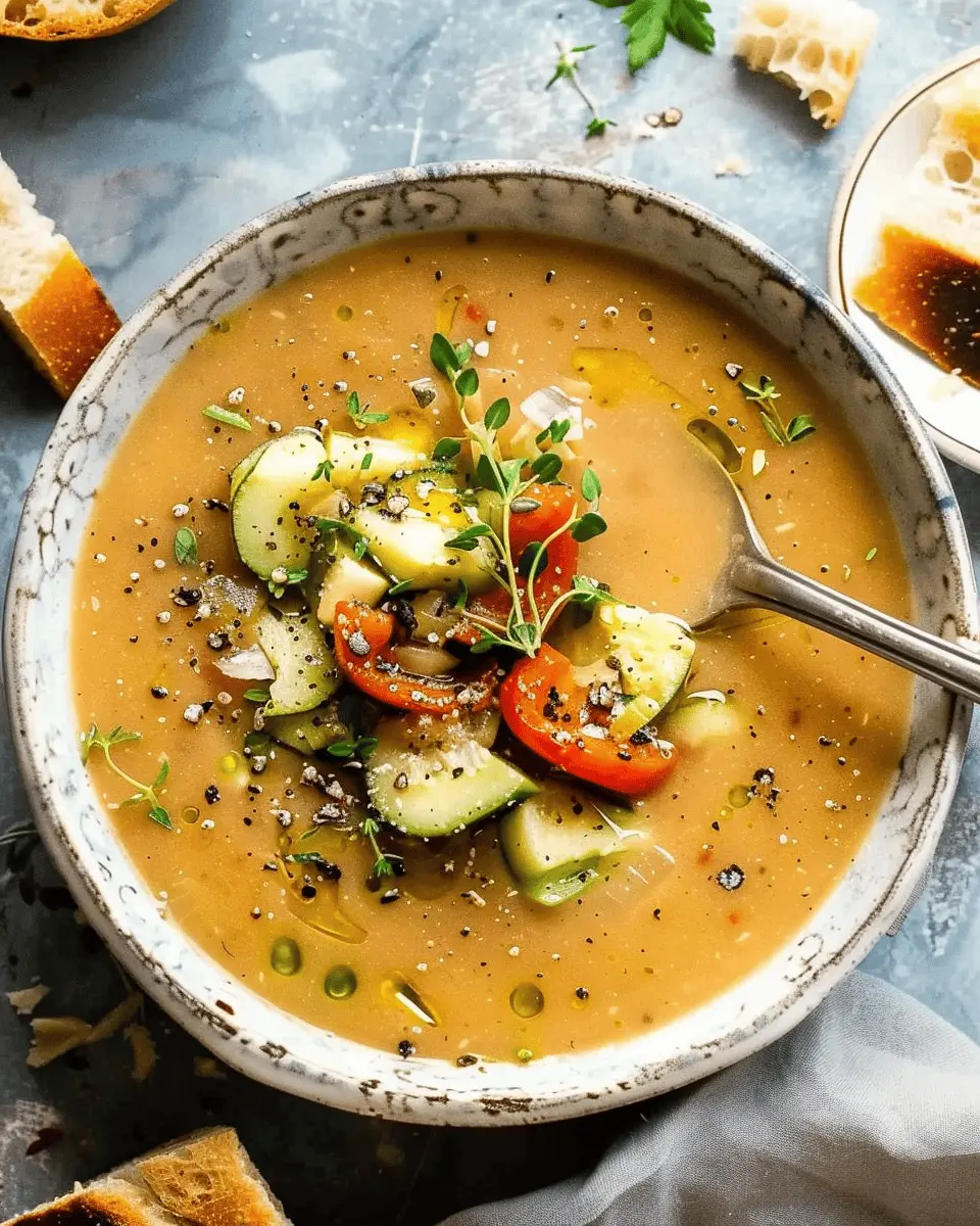 A warm and comforting Ratatouille Soup that combines the flavors of summer vegetables in a savory broth.