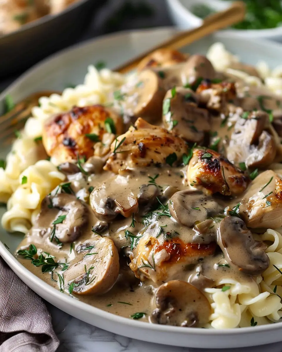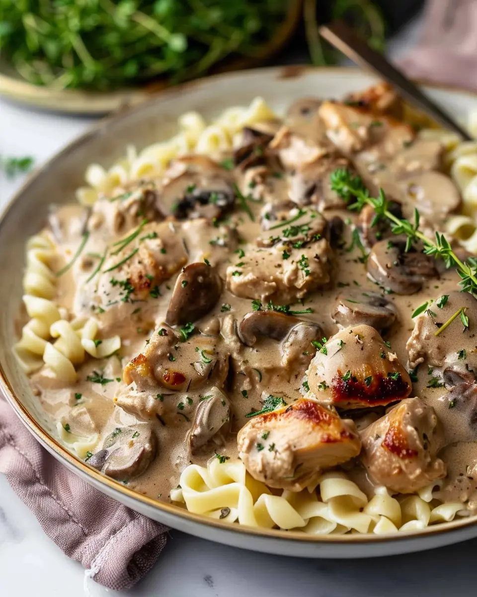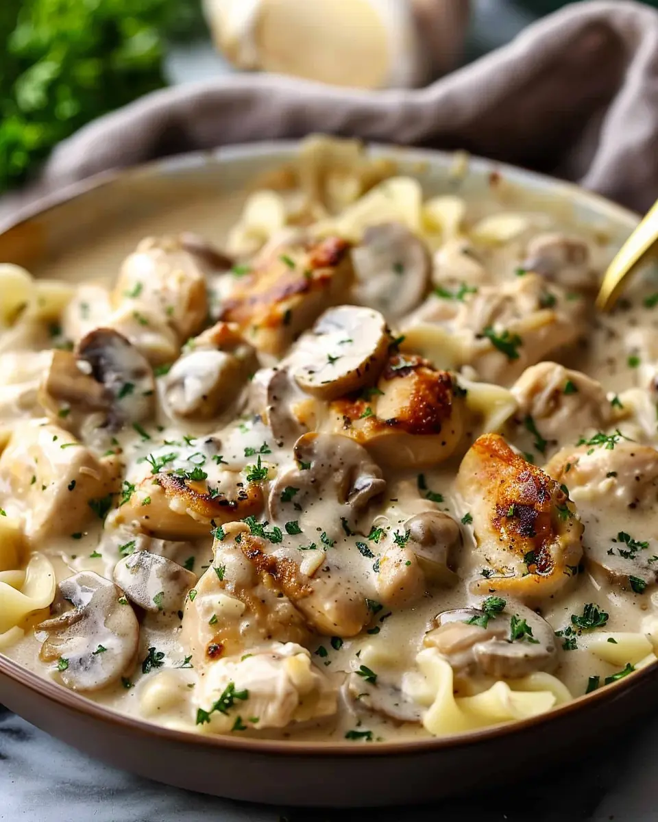 • Serve and Enjoy: Serve over egg noodles or rice, garnishing with fresh parsley if desired. This rich chicken stroganoff is sure to impress!