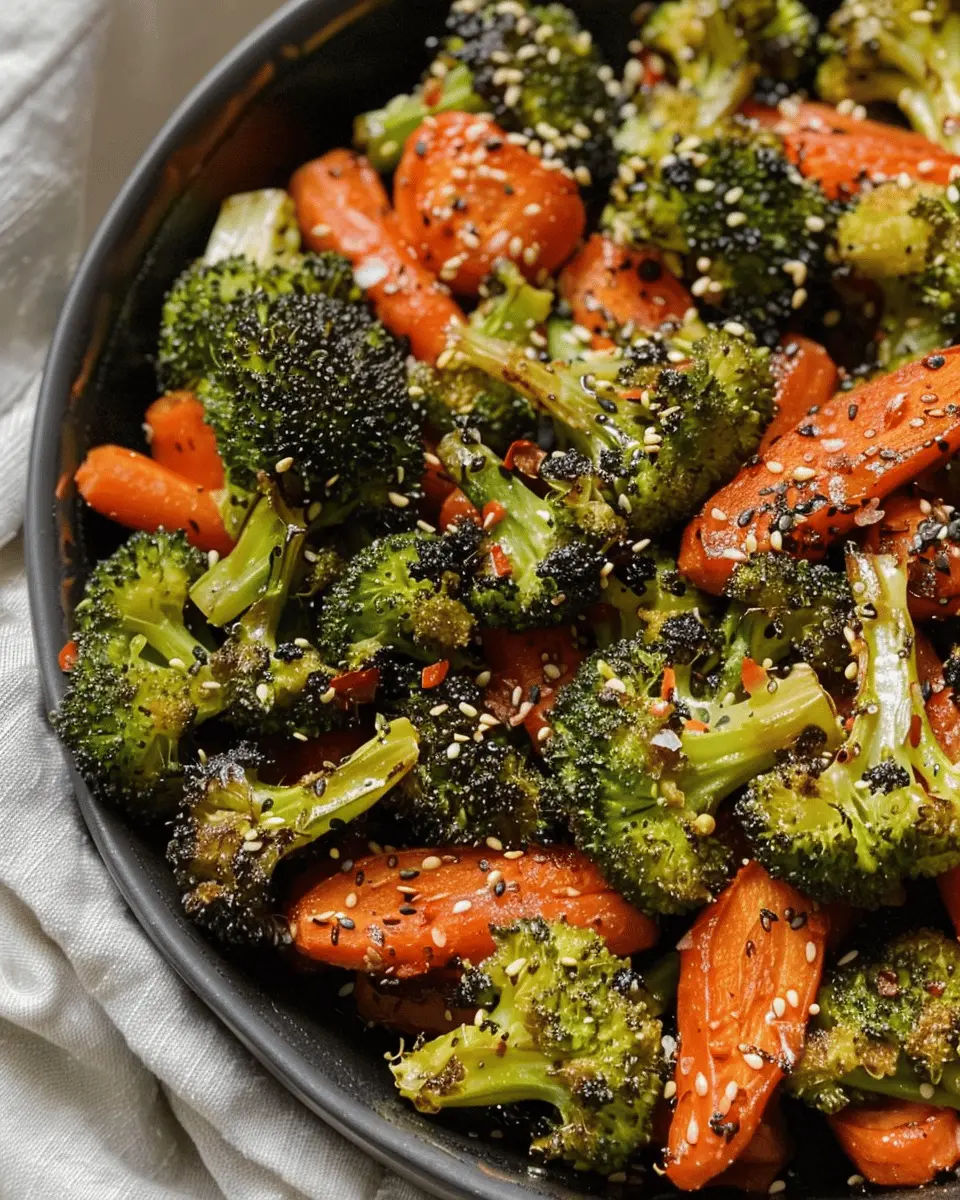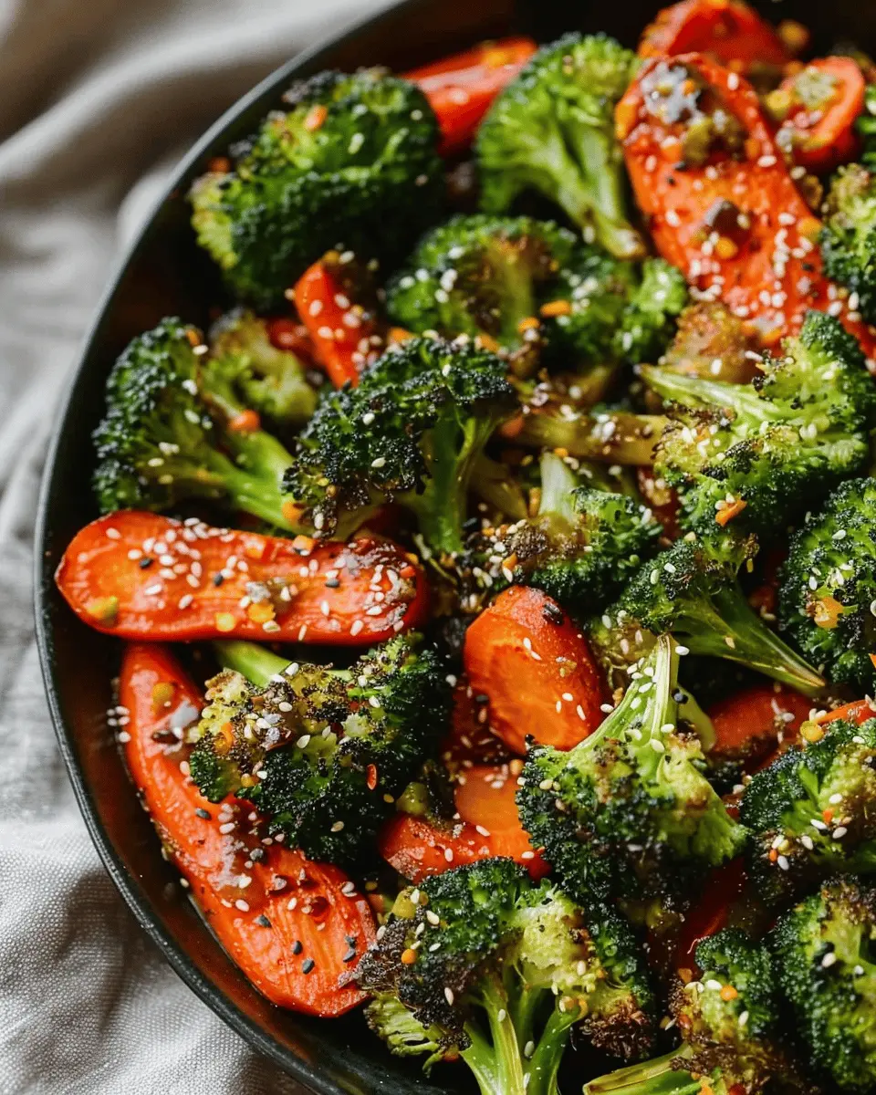 Keywords: Roasted Broccoli, Carrots, Asian-Inspired, Side Dish
