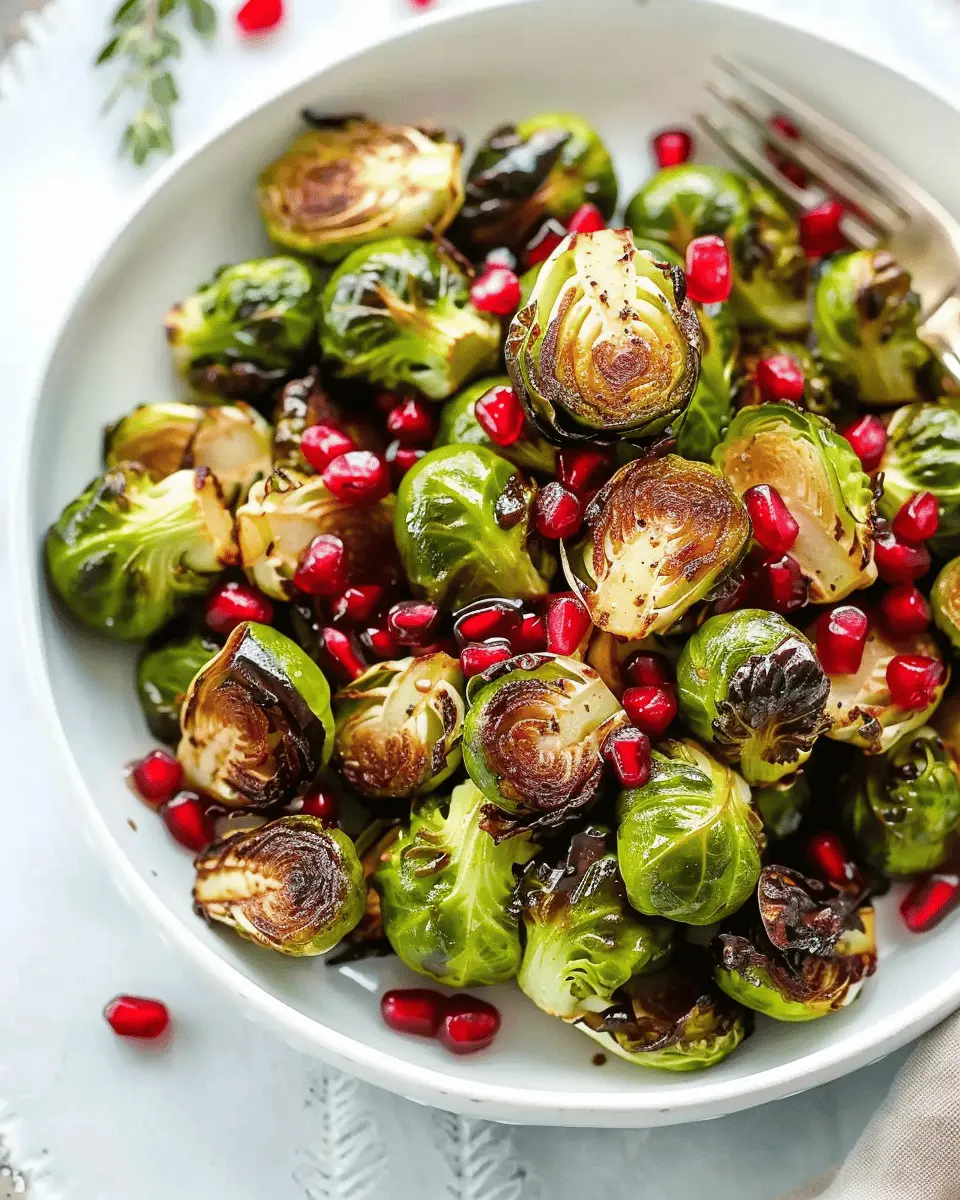 These roasted Brussels sprouts pair beautifully with a pomegranate-balsamic glaze, creating a dish that’s not only delectable but also visually stunning. If you want to educate yourself further on Brussels sprouts, check out this article on Seasonal Produce for more tips!