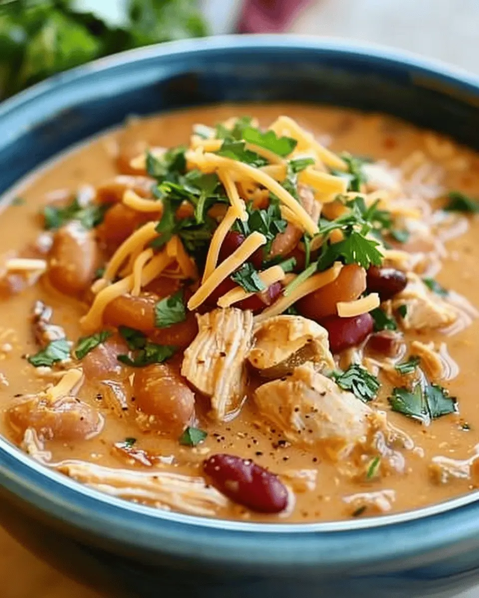 PrintSlow Cooker Cream Cheese Crack Chicken Chili with Turkey Bacon Delight