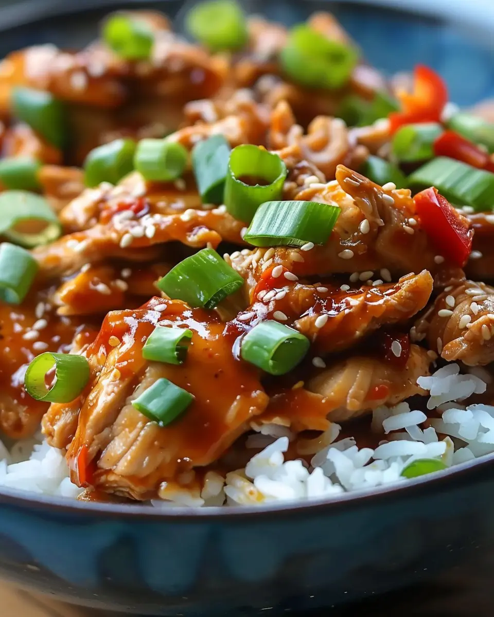 Your slow cooker sweet chili chicken is now ready to shine! Serve it over a bed of fluffy rice or noodles, and don’t forget to garnish with fresh green onions or sesame seeds for that extra flair. Pair it with a simple side salad for a balanced meal, and you’re good to go.