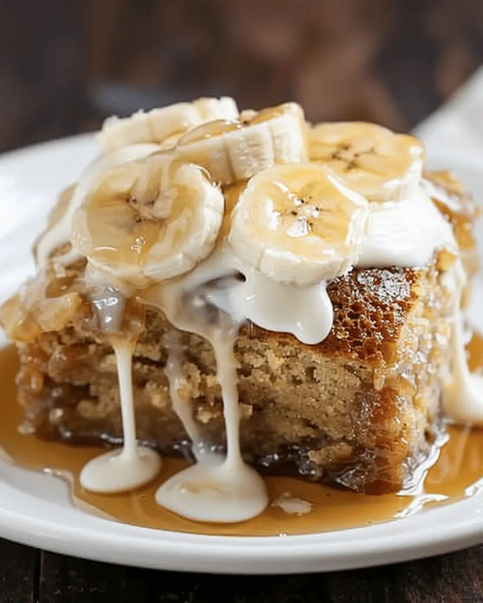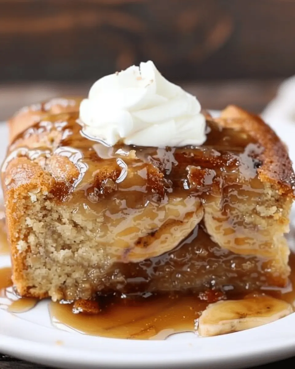 Keywords: Sticky Banana Bread Pudding Cake, dessert recipe, banana pudding, comfort dessert