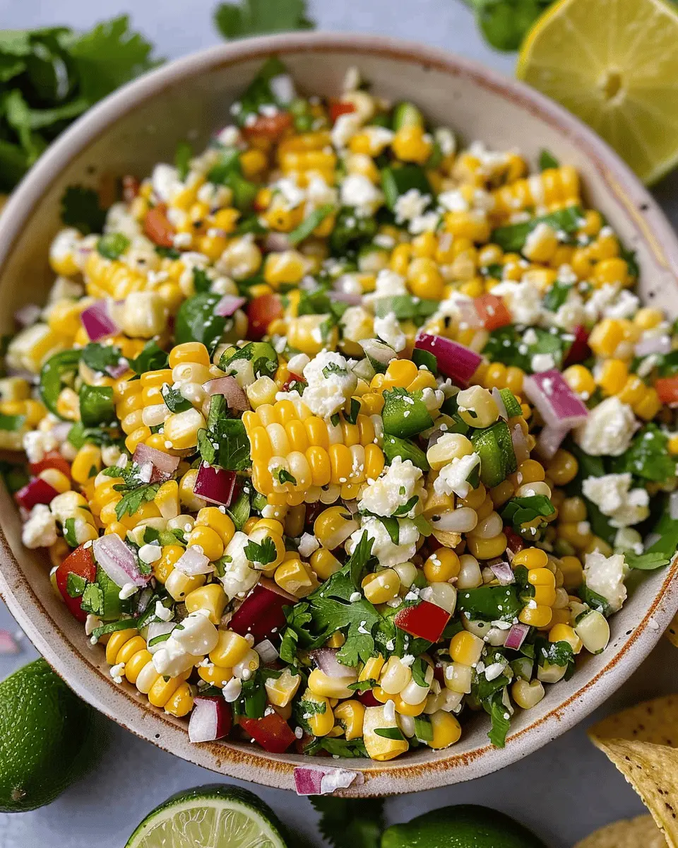 This vibrant street corn salad is not just a feast for the eyes; it’s also packed with nutrition! A typical serving has about 200 calories, which is pretty reasonable for a side dish. You can expect to find:
