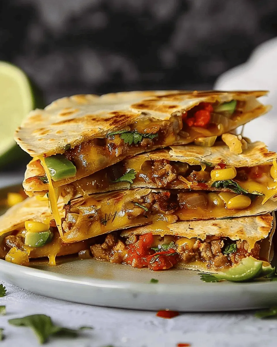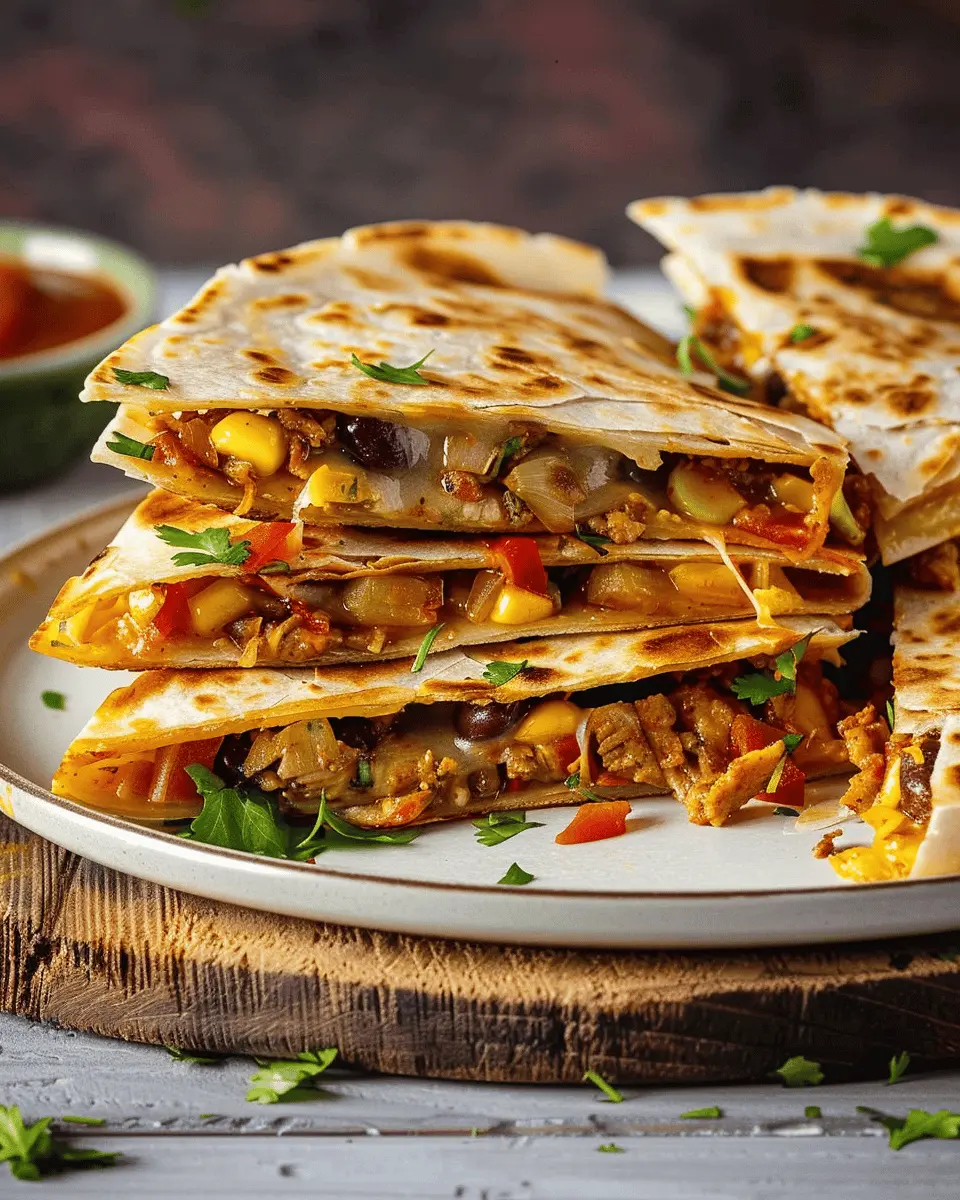 • Cut into wedges: Slice your quesadillas into triangles and arrange them in a fan shape for eye-catching symmetry.