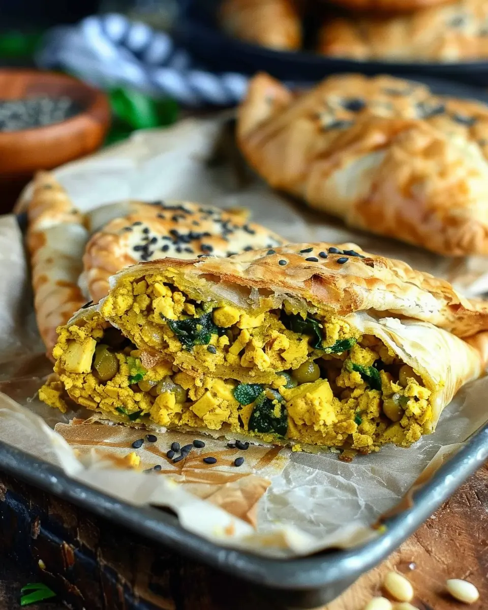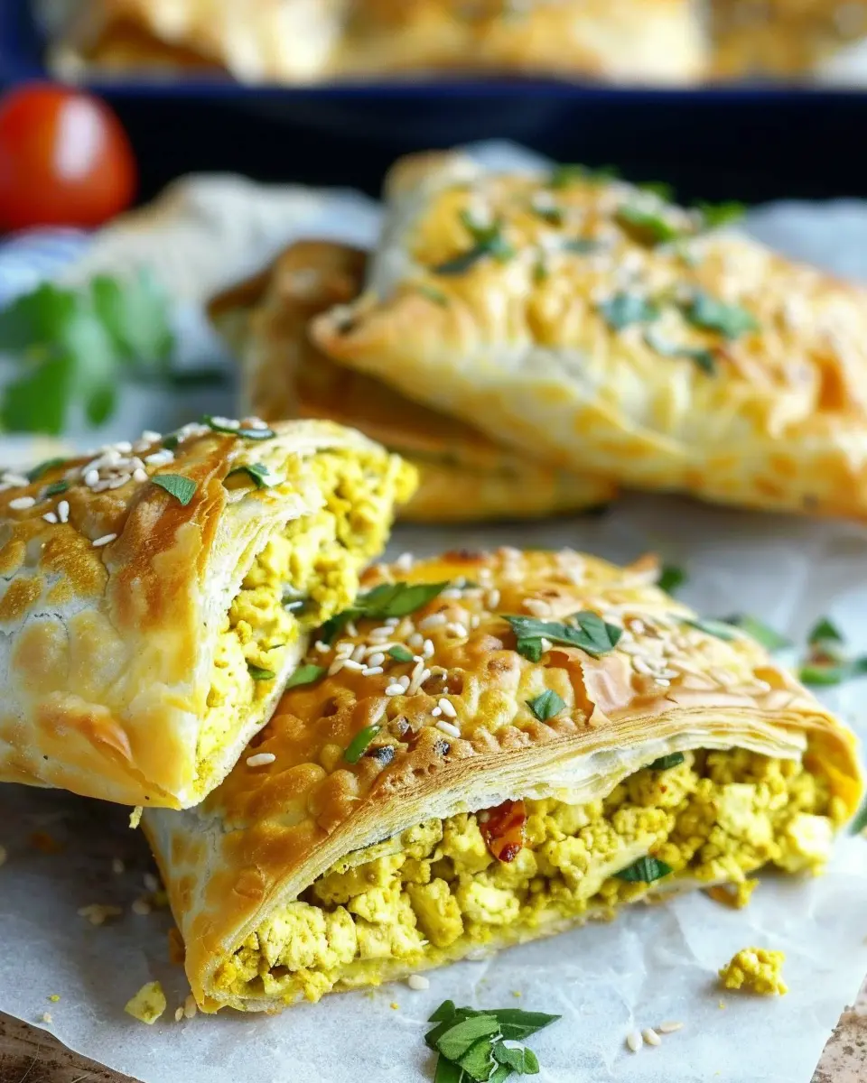 A deliciously nutritious breakfast option featuring a savory tofu scramble wrapped in pockets.